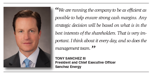 “One hundred percent of our production and about 90 percent of our capital is going into the Eagle Ford,” Sanchez says.