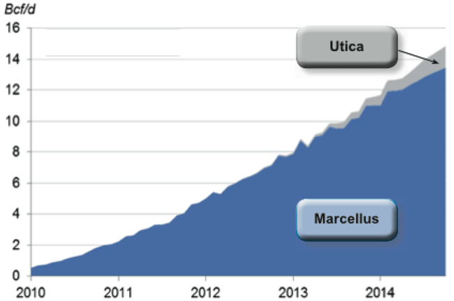 Marcellus and Utica Shale Natural Gas Production Since 2010