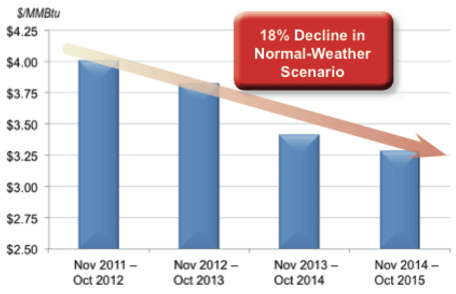 In an increasingly oversupplied market, even if last year’s exceptionally severe winter were to be repeated, prices are unlikely to continue escalating through the heart of the winter, as they did in January and February of 2014. Instead, even if bullish weather forecasts validate, the far-more likely scenario is that prices will peak early in the winter.