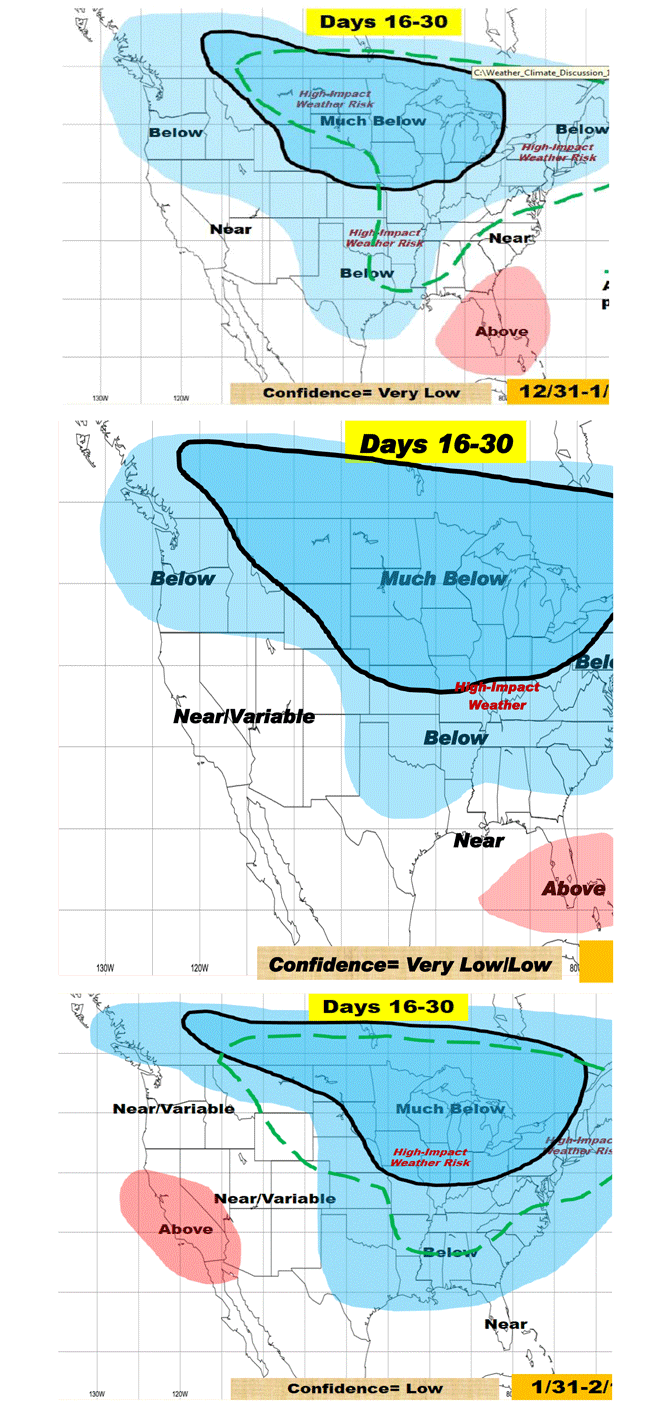 This dependence on a flawed approach to weather forecasting is not necessary. At least some forecasting firms, such as Weather Decision Technologies Inc. (WDT) in Norman, Ok., employ a more sophisticated approach. Using next-generation forecasting techniques, WDT was able to identify the potential for continuing bitter cold weather last winter much earlier than many other forecasters, as illustrated by the maps in Figure 8.