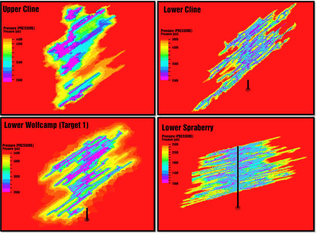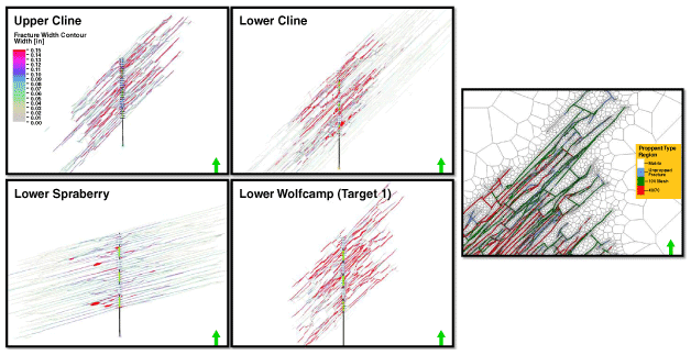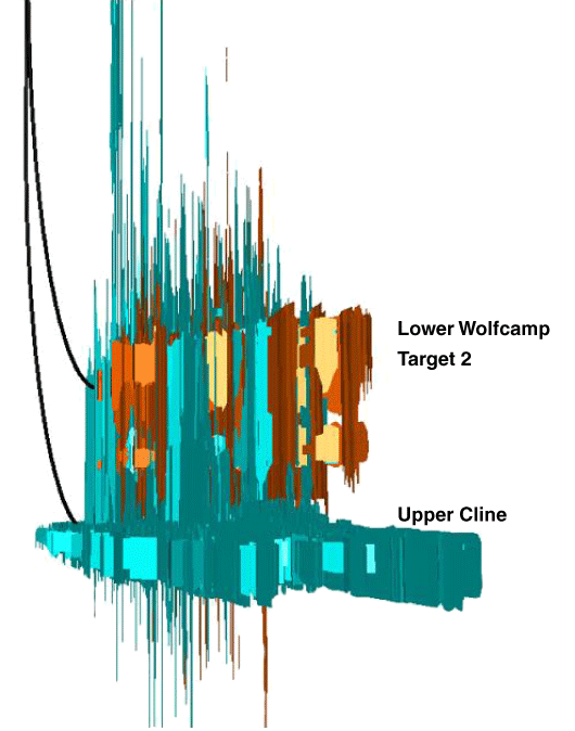 Four zones stood out in terms of higher oil production: the Lower Spraberry, Lower Wolfcamp (two targets), Upper Cline and Lower Cline. Fractures in all five targets are in isolation, so they were used as an input to the next step of determining optimal well spacing.