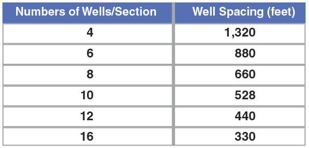 To determine the optimum well spacing, the model was constrained at various distances away from the wellbore. Table 1 shows the number of wells per section for those constraints. By applying the spacing constraints to the model, 15-year forecasts with a BHP limit of 750 psi were run (Figure 7).