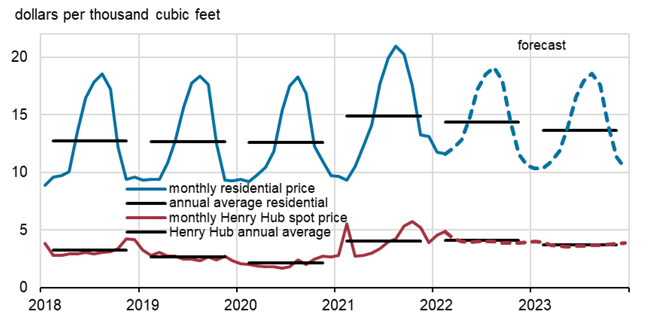“We expect production will rise from February levels, contributing to a lower average Henry Hub price of $4.10/MMBtu for March. We expect the Henry Hub spot price will average $3.83/MMBtu in the second quarter, $3.95/MMBtu for all of 2022, and $3.59/MMBtu in 2023.”