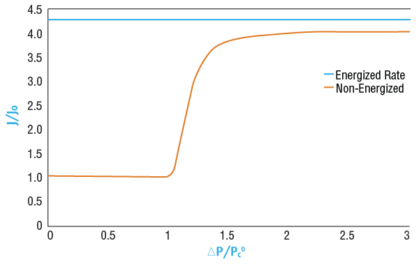 Figure 2 compares the predictive productivity (a unitless measure of J/J0) of energized solutions versus nonenergized water fracture stimulations, using the simulation technology developed at UT Austin. It provides the theoretical framework supporting the improved productivity results from utilizing energized solutions for fracturing.