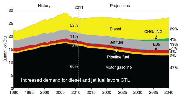 GTL makes sense in the new gas-rich world. Natural gas, itself, is a poor substitute for most transportation fuel needs; infrastructure challenges inhibit the widespread adoption of compressed and liquefied natural gas for mainstream automotive purposes. In contrast, GTL is designed to make exactly the liquid fuels the world most thirsts for and is best configured to utilize: diesel and jet fuel.