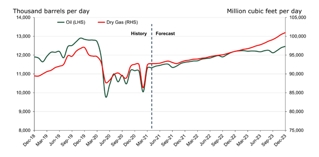 Forecast U.S. Oil and Dry Gas Production (Base Case)