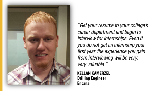 For Kellan Kamerzel, an engineer with Encana Corp., the key to excelling in college is to seek experience outside it.
