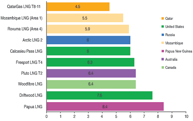Breakeven price includes feed gas, LNG capex, liquefaction opex and transportation cost to East Asia