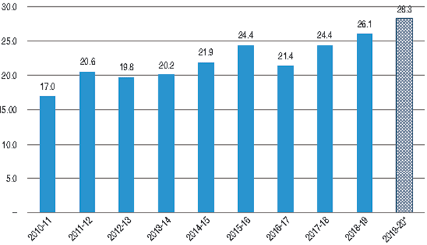 As shown in Figure 2, average daily wintertime use of natural gas for power generation has been growing over the past decade, jumping from 17 Bcf/d in winter 2010-11 to an estimated 28 Bcf/d this winter despite the unseasonably mild weather. Natural gas usage in the power sector during the winter months is part of a general trend that saw average daily deliveries to power generators increase 14.3% in 2018 to 29 Bcf/d, accounting for 35% of all natural gas consumption that year, EIA points out.