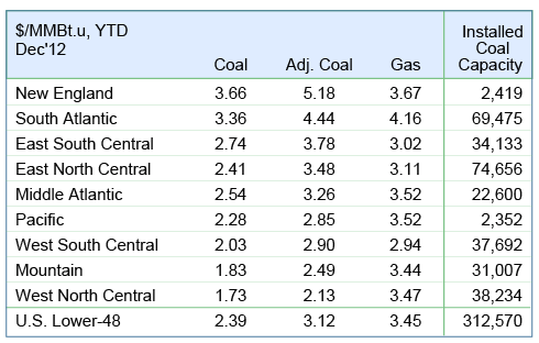 “Of course, fuel cost is only one factor to consider when deciding which fuel to burn, albeit an important one,” Viswanath comments. “But this year is proving to be somewhat of a bump in that road, as we expected. Gas’s share of power generation peaked in July 2012 at 33 percent, and then declined to 25 percent by December and January. Some of that relative change is a normal seasonal fluctuation, but we are seeing the year-over-year contribution percentage of gas start to slide. We are anticipating increased percentage losses through 2013.”