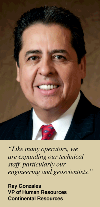 Continental Resources Inc. can claim to have its share of bright young stars. Two of the company’s geologists, 27-year-old Tony Moss and 28-year-old Andy Rihn, appear on Forbes’ “30 Under 30 in Energy” list. In response to rapid growth, the company has recruited 145 new personnel in the past six months, reports Vice President of Human Resources Ray Gonzales.