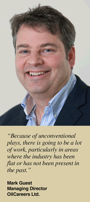 But unconventional oil and gas resources are the driving force behind the growing demand for engineers and other professionals. “Because of unconventional plays, there is going to be a lot of work, particularly in areas where the industry has been flat or has not been present in the past,” Guest says, noting that OilCareers.com’s traffic reflects this trend. “Overall traffic is up 27 percent year-on-year, but it is up much more in states with booming shale plays. For example, visits from Ohio are up 55 percent.”