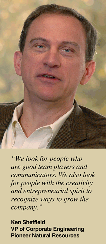 According to Ken Sheffield, Pioneer’s vice president of corporate engineering, the company is actively recruiting petroleum, mechanical and chemical engineers.