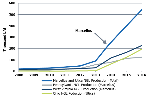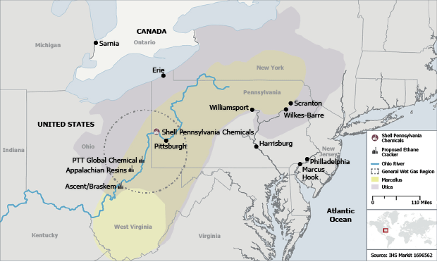 The shift in U.S. petrochemical capacities enabled by increased production from shale gas plays will continue, and the value of the liquid constituents contained in the natural gas stream is an important economic driver for future production growth in the Marcellus and Utica plays, according to a report from IHS Markit.