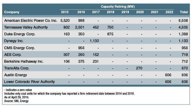 Assuming scheduled retirements proceed as planned, approximately 46,000 mw of U.S. coal capacity will be closed between 2012 and 2022. That number almost undoubtedly will grow as generators continue to decide the fate of their fleets.