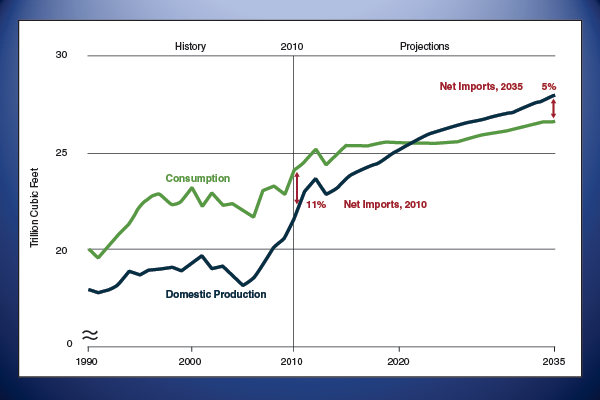 Even with increased domestic demand, however, the export market looms as a major opportunity, especially for liquefied natural gas, despite its huge capital costs and political and environmental opposition. When the United States starts to export LNG, it actually will represent a new market for natural gas, and not simply an increase in an existing one. Several LNG export projects have been approved both in the United States and Canada, with exports scheduled to begin as early as 2015.