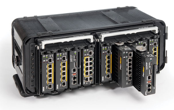 Compact, ruggedized networking equipment is small enough to be checked as luggage or even as carry-on baggage. These modular communications solutions are designed to maximize capabilities and configuration flexibility, including routing, switching and advanced network services in lightweight packaging with a variety of power options.
