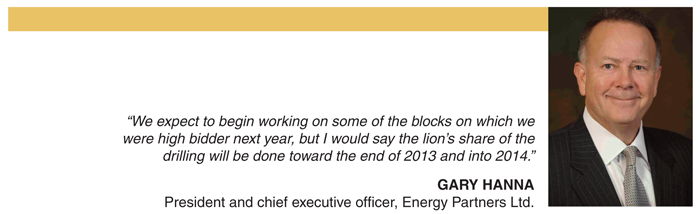 According to Hanna, EPL is producing 9,000-10,000 boe/d from its existing fields. “We expect to begin working on some of the blocks on which we were high bidder next year, but I would say the lion’s share of the drilling will be done toward the end of 2013 and into 2014,” he projects. “We are excited about the potential of these blocks.”
