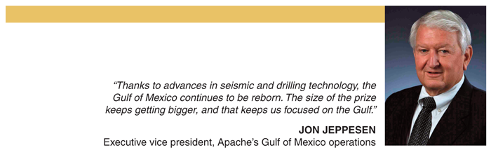 “The Shelf and deep water are both important for us, and I think our bids reflect that,” says Jon Jeppesen, executive vice president for Apache’s Gulf of Mexico operations. “The deep water is expensive and you have to compete against the big boys. Even the minimum bid amounts set by BOEM are higher. However, we see tremendous potential in the deepwater Gulf, especially for oil.”