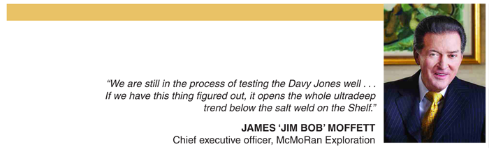 “We are still in the process of testing the Davy Jones well (located in 20 feet of water at South Marsh Island Block 230),” says Moffett. “When that work is complete, we will make a decision on where we will go with our ultradeep Shelf drilling program. If we have this thing figured out, it opens the whole ultradeep trend below the salt weld on the Shelf. At this point, however, there is not a lot of information (other than) the work we have been doing.”