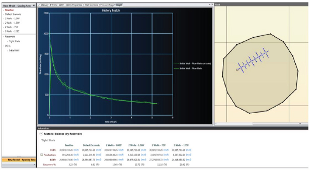 Typically, the next step is determining the location, spacing and completion method of proposed development well(s) by setting up one or more hypothetical infill or offset drilling scenarios. With BEM simulation, a dozen or more spacing sensitivities, each with multiple wells, can be compared, with the results delivered back to the engineer within 48 hours of submitting to the service center.
