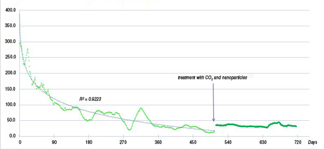The HnP-style injection of this gas-nanoparticle combination in existing wells improves incremental hydrocarbon production and economic returns. Successful treatment enhances production for six months or more, with improvements lasting up to 24 months, thanks to the effective penetration and residual value of the nanoparticles.