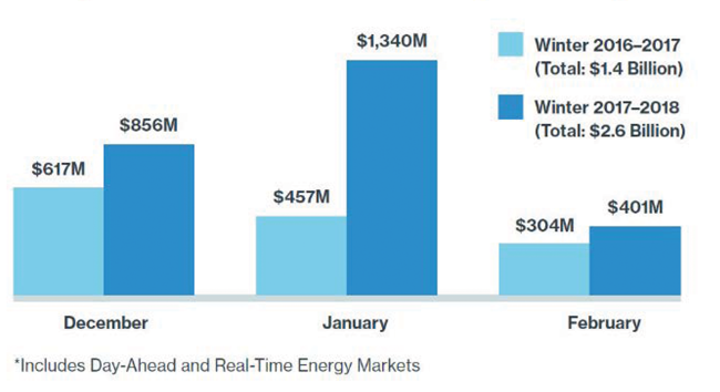 Wholesale Energy Costs during Winter 2017-2018 Compared to Winter 2016-2017 (in millions)*