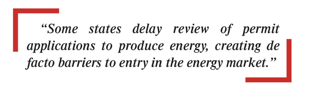 In addition to highlighting specific laws, the order finds that “some states delay review of permit applications to produce energy, creating de facto barriers to entry in the energy market.” It instructs the attorney general to “identify all state and local laws, regulations, causes of action, policies and practices . . . burdening the identification, development, siting, production, or use of domestic energy resources that are or may be unconstitutional, preempted by federal law, or otherwise unenforceable.”
