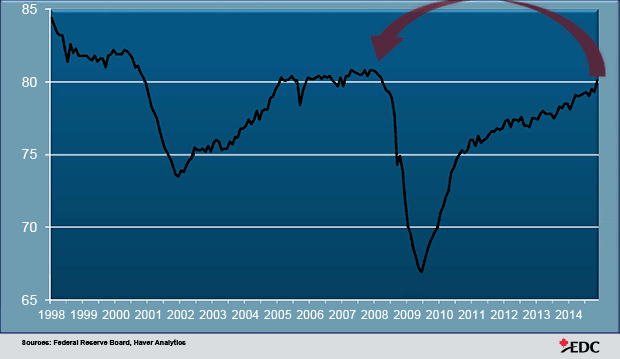 Production capacity–the utilization of factories and services to fill orders–is another key index, Bergman says. “As capacity reaches higher levels, companies start thinking about expanding their ability to produce. And with companies sitting on so much cash–some $6 trillion globally–the investments in new plants and equipment are taking place.”