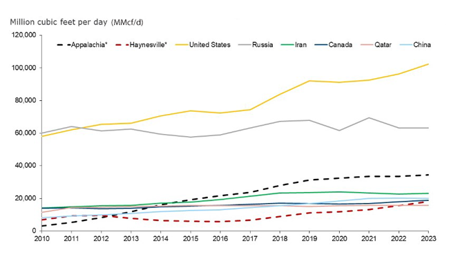 Total Gas Production for Key Countries and Major U.S. Shale Basins