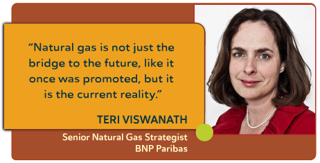 Teri Viswanath, senior natural gas strategist for BNP Paribas, notes with some irony that the power sector is in the midst of a complicated and delicate balancing act as it retires coal-fired units and tries to make sense of where and how to replace that generating capacity. “The power sector always has been the balancing act in the North American natural gas market, with industrial and residential demand remaining fairly stable,” she suggests.