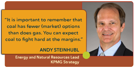 One additional factor in the size of the gas-fired power market is that the coal industry is hardly a passive observer. “Coal and gas chase each other at the margins,” says Andy Steinhubl, lead for energy and natural resources at KPMG Strategy.